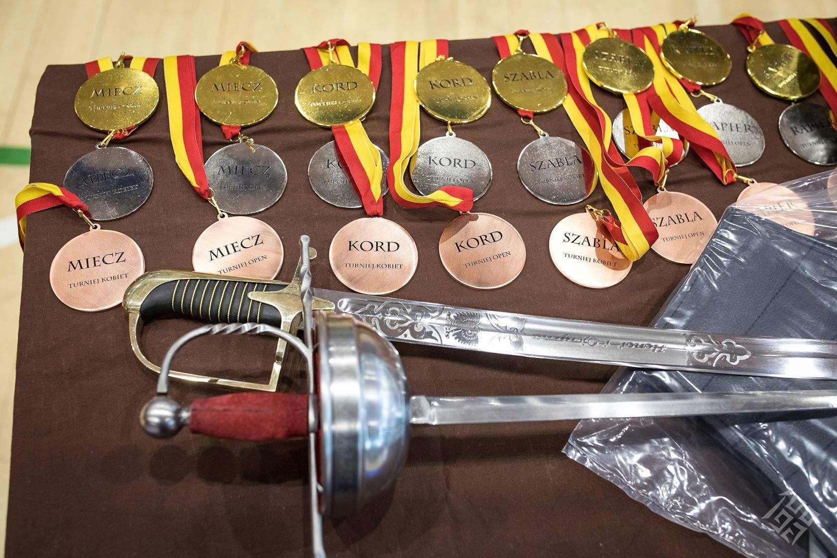 Na treningach walczymy szpadą dworską, rapierem z lewakiem lub perleryną, szablą i mieczem długim.